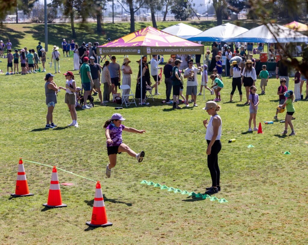 Every year, the Seven Arrows community participates in a variety of Athletics Events. We start the year with the Walk-A-Thon, which is a fun fundraiser in support of our Athletics Department. In the spring, the whole school splits into two teams and competes during Athletics Day. Just before summer break, together we celebrate Family Field Day. Another great event is our Sixth Grade Triathlon, where our Sixth Graders swim, cycle and run in an important rite of passage. The whole school cheers them on as they reach the top of Temescal.